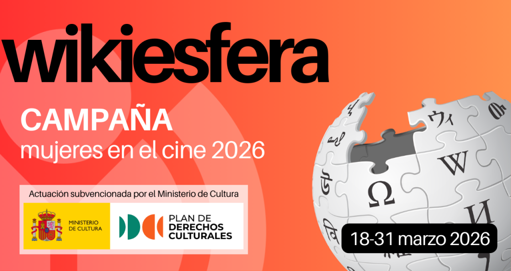 Desde Wikiesfera lanzamos una campaña para visibilizar a las mujeres del cine en Wikipedia. Durante dos semanas trabajaremos de forma virtual y asíncrona para crear, traducir y mejorar artículos sobre directoras, guionistas, productoras, actrices y otras profesionales del sector audiovisual que todavía no cuentan con la representación que merecen en la enciclopedia libre.