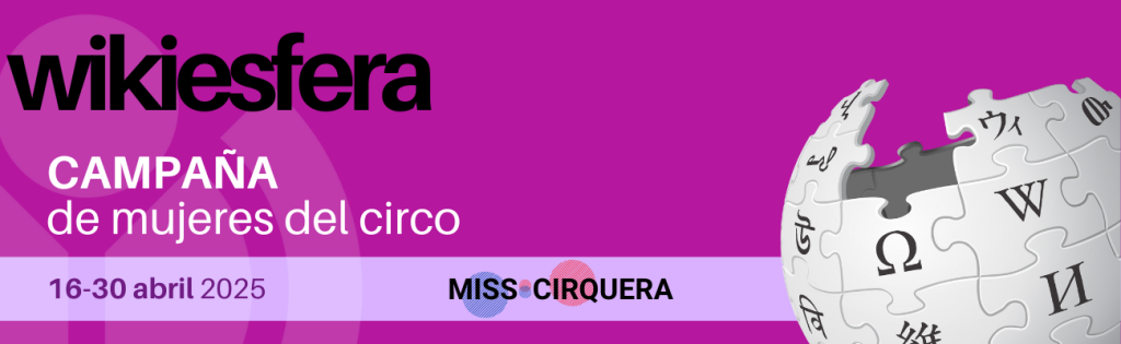 En abril de 2025, desde Wikiesfera junto a la plataforma de divulgación Miss Cirquera lanzamos una campaña colaborativa, virtual y asíncrona para dar mayor visibilidad en Wikipedia a las Mujeres del Circo. En el marco de la celebración del Día Mundial del Circo y durante 15 días, quisimos contar sus historias, reconocer sus trayectorias y hacer justicia a su presencia en una disciplina donde han estado siempre, aunque pocas veces sean las protagonistas de los relatos. Aprovechamos para incluir obras (pinturas, documentales…) dedicadas a ellas.